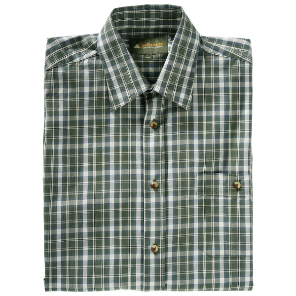 Klassisches Karohemd von Schmidt mit Umlegekragen ? der perfekte Begleiter für Ihr nächstes Outdoor-Abenteuer oder den Jagdausflug. Hergestellt aus hautsympathischer Baumwolle bietet dieses Hemd höchsten Tragekomfort, selbst bei längeren Einsätzen im Freien. Die bequeme Weite und die optimale Rückenlänge sorgen für eine ideale Passform. Die durchgehende Knopfleiste ist mit stilvollen Knöpfen in Naturoptik versehen, zudem gibt es links eine praktische Brusttasche mit Knopfverschluss für zusätzlichen Stauraum von kleinen Utensilien. Ob auf der Pirsch oder beim Wandern ? mit diesem Karohemd sind Sie immer gut ausgestattet.