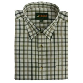 Kurzarm Karohemd in beige/oliv/braun von Schmidt ? ideal für Jagd und Outdoor-Abenteuer. Gefertigt aus hautsympathischer Baumwoll-Qualität, bietet dieses Kurzarmhemd maximalen Tragekomfort und Langlebigkeit. Das Hemd überzeugt durch seine bequeme Weite und eine praktische Brusttasche, die Platz für kleine Utensilien bietet. Mit einer angenehmen Rückenlänge ist es perfekt für aktive Tage im Freien geeignet.
