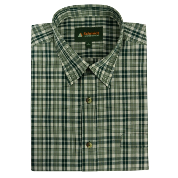 Klassisches Kurzarm-Karohemd von Schmidt mit Umlegekragen ? der perfekte Begleiter für Ihr nächstes Outdoor-Abenteuer oder den Jagdausflug. Hergestellt aus hautsympathischer Baumwolle bietet dieses Hemd höchsten Tragekomfort, selbst bei längeren Einsätzen im Freien. Die bequeme Weite und die optimale Rückenlänge sorgen für eine ideale Passform. Die durchgehende Knopfleiste ist mit stilvollen Knöpfen in Naturoptik versehen, zudem gibt es links eine praktische Brusttasche mit Knopfverschluss für zusätzlichen Stauraum von kleinen Utensilien. Ob auf der Pirsch oder beim Wandern ? mit diesem Karohemd sind Sie immer gut ausgestattet.