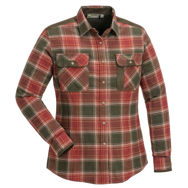 Exklusive und weiche Flanelbluse mit schönen Details in Wildleder-Haptik. Den gewissen Pep geben die Kontraste an der Schulterpartie und am Ärmelaufschlag, die Druckknopf - Frontleiste und die 2 Brusttaschen mit Patte.