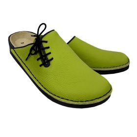 Unser Klassiker in frischem Look für Damen! Diese Schmidt's PANTOS Damen-Pantoffeln aus handgenähtem Rindleder in hochwertiger zwiegenähter Qualität sind der ideale Begleiter für Ihre Freizeit und entspannte Stunden zu Hause. Das Modell in saftigem Apfelgrün wird durch die schwarzen, aufwendig paspelierten Ränder stilvoll akzentuiert und erhält durch die seitliche Schnürung eine feminine Note. Mit einer robusten Polyurethan-Sohle und einem bequemen Lederfußbett bieten diese Hausschuhe Stabilität und Komfort für einen rutschfesten Stand und ein angenehmes Tragegefühl. Hergestellt in unserer europäischen Produktion, haben sich diese Pantoffeln seit vielen Jahren als verlässliche Wohlfühlschuhe bewährt ? ideal für gemütliche Abende und entspannte Momente.
