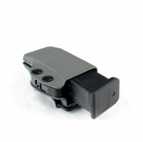 Bei der Black Arch Kydex Pistolenmagazinhalterung handelt es sich um eine sehr stabile Magazinhalterung für verschiedene Pistolenmagazine. Die Magazinhalterung wird mit einem Standardclip am Gürtel befestigt und verfügt über einen einstellbaren Ausziehdruck.