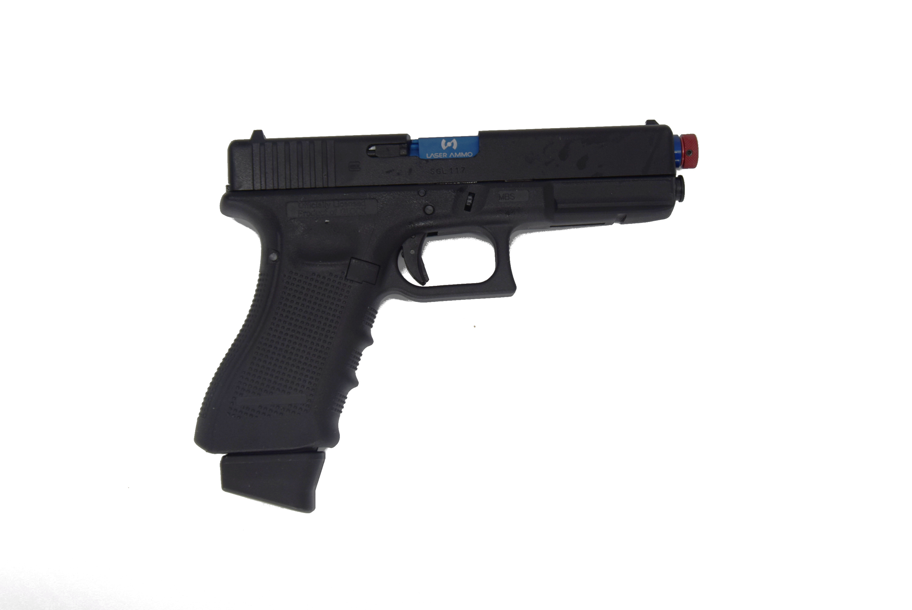 Die Glock 17 ist eine der am häufigsten verwendeten Dienstwaffen weltweit. Aus diesem Grund produziert Laser Ammo Laser Trainingskits für die Gas Blow Back-Varianten der Glock 17 von der Firma UMAREX. Bei uns erhalten Sie die bereits vorkonfigurierte Lasertrainingswaffe, bestehend aus der UMAREX Glock 17 GBB für Green-Gas-Befüllung und dem R.E.A.L. Kit der Firma Laser Ammo.