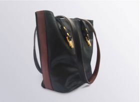 Diese zweifarbig gearbeitete Handtasche hat genau die richtige Größe für jeden Anlass. Aus federleichtem,