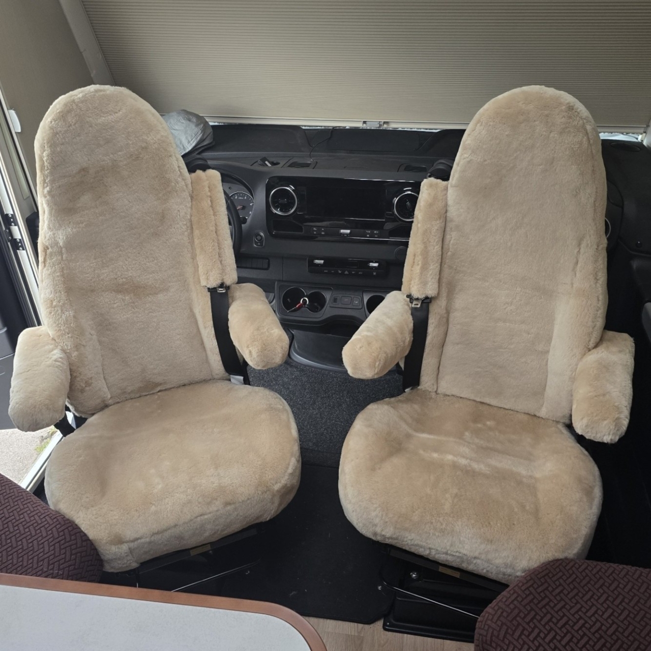 Genießen Sie den unübertroffenen Sitzkomfort auf Ihren Wohnmobil ? Reisen: mit unseren maßgefertigten Sitzbezügen aus gewachsenem Schaffell!