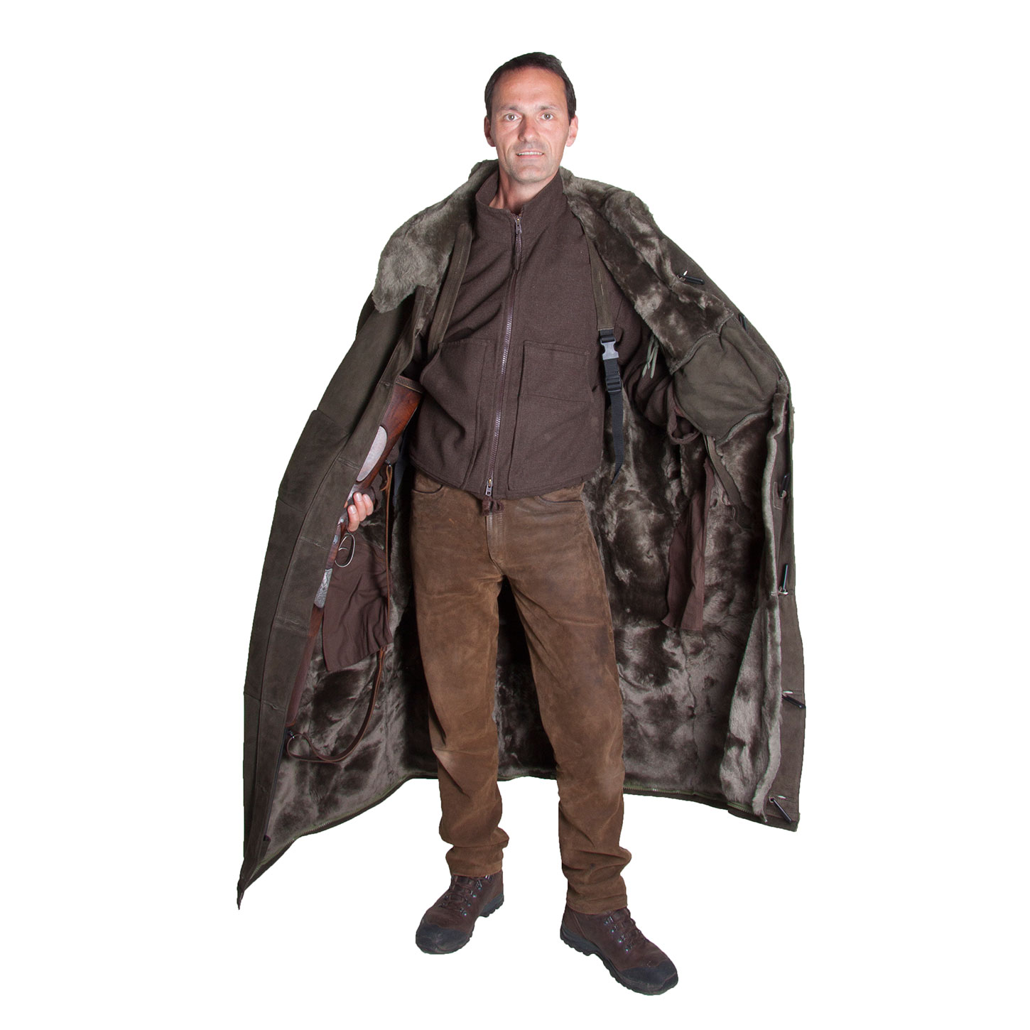 Sein Tragesystem erlaubt längeres Gehen, ohne zu schwitzen. Sowohl für Drückjagden als auch für die Ansitzjagd konzipiert, bietet er größte Bewegungsfreiheit und Variabilität. Beim Anschlagen der Waffe unter dem Fell entstehen keine Probleme mit veränderten Abständen zur Optik. Die Beweglichkeit der Arme und damit Ihre Schnelligkeit und Zielgenauigkeit bleiben voll erhalten. Die Hände finden Platz in mollig warmen Muff-Taschen. Die seitlichen 2-Wege-Reißverschlüsse sind von innen zugänglich und ermöglichen an jeder Stelle des Reißverschlusses eine Öffnung in beliebiger Größe. Für die Verwendung bei Drückjagden bestellen Sie bitte das optional erhältliche Lodencape in Signalfarbe dazu.